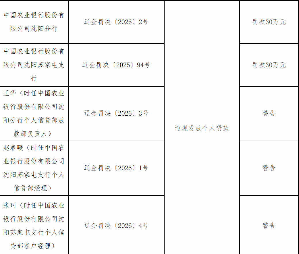 炒股怎么配资APP下载 中国农业银行股份有限公司沈阳分行及苏家屯支行因违规发放个人贷款分别被罚30万元 中国 来源:东方优配平台 网站:卓信宝配资 日期:2026-01-13 07:25:54 查看:192